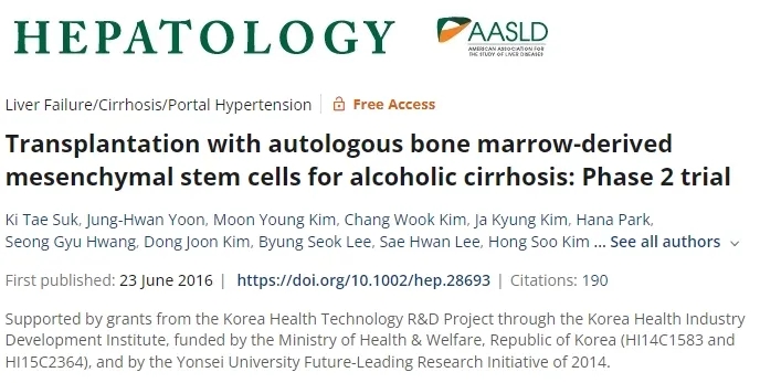 在另一项临床试验中,Suk等人在本例中使用从酒精相关性肝硬化患者的髂后嵴提取的自体骨髓间充质干细胞(BM-MSC)评估了TASI。在这种情况下,患者被分为三组:第一组仅进行一次注射,第二组进行两次注射(1个月后一次,2个月后一次),第三组是对照组。共有50名患者入组并随访12个月,并通过试验前和治疗后肝活检及纤维定量(6个月后)进行评估。