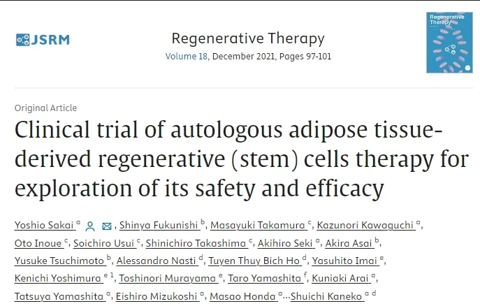 2021年,酒井等人进行了一项多机构临床试验,涉及七名非酒精性脂肪性肝炎(NASH)或脂肪肝疾病相关肝硬化患者。该研究包括从患者腹部或臀部的皮下组织中提取脂肪、分离自体脂肪组织来源的间充质干细胞,以及随后的TASI。通过实验室检查(血清白蛋白浓度和凝血酶原活性)对患者进行24周的随访。3个月后,七名患者中有六名的血清白蛋白浓度有所改善,七名患者中有五名的凝血酶原活性有所改善。24周后,所有患者均为Child-PughA。