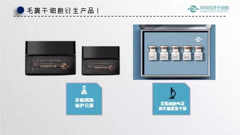 为了进一步提高毛发种植后的成活率、促进毛囊干细胞生长等问题,华科同济干细胞公司还研发了一系列用于养发、护发和固发的毛囊干细胞衍生产品: